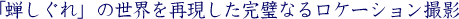撮影は2003年8月、新潟の実景撮影からクランクイン。山形での猛吹雪が舞う中で撮影。桜咲く春、「蝉」の鳴き声が染み渡る夏と、四季を通して一年に及ぶ撮影体制が組まれました(2004年9月山形ロケでクランクアップ)。見ごたえある力強いセット美術と日本が世界に誇る美しい四季の風景が映画「蝉しぐれ」の世界を彩ることとなったのです。